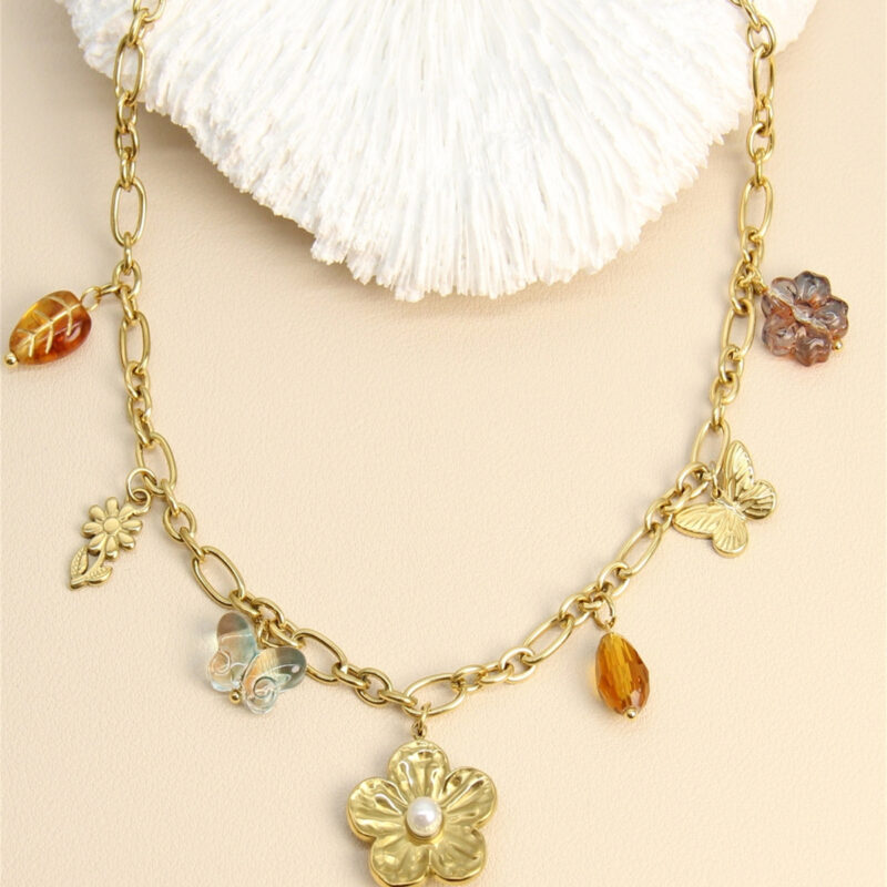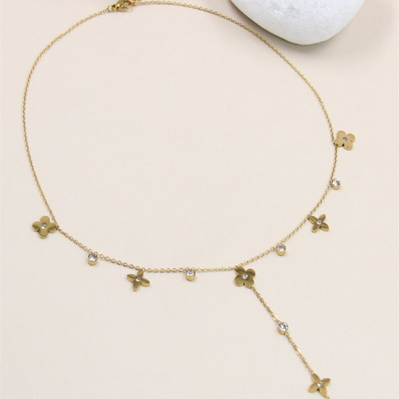 collier fleur en acier inoxydable 70% ACIER 30% STRASS