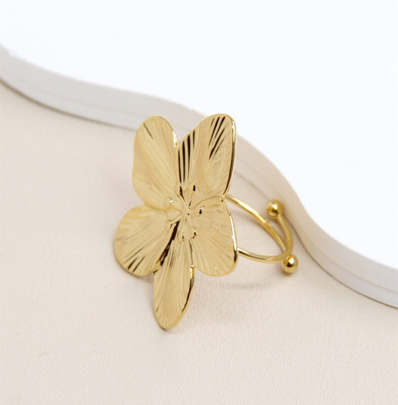 Bague ajustable en acier inoxydable au design floral