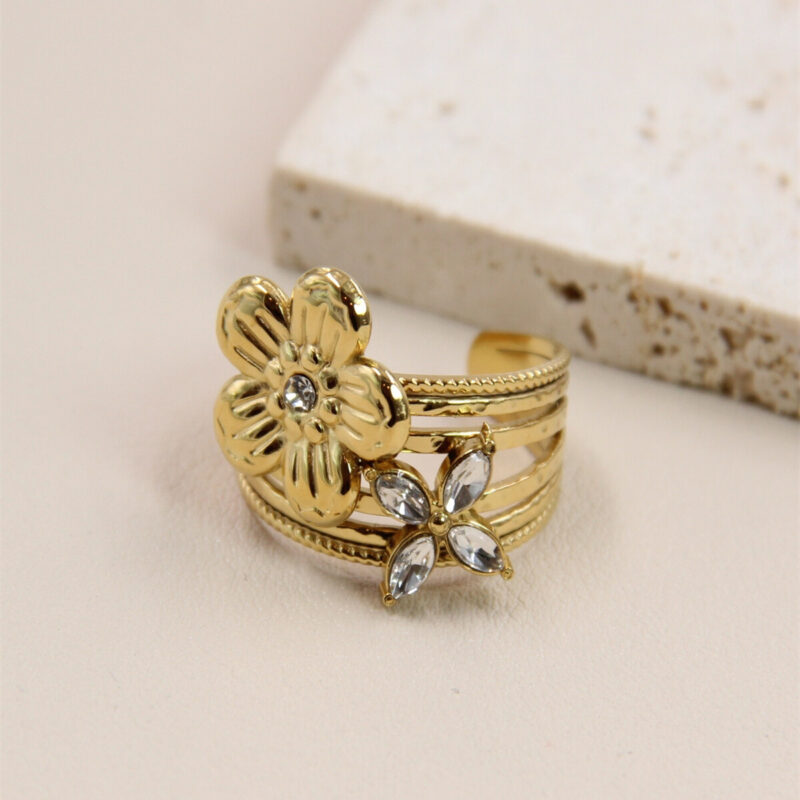Bague Ajustable Fleur – Étoile Strass en Acier Inoxydable : Mode Éclatant