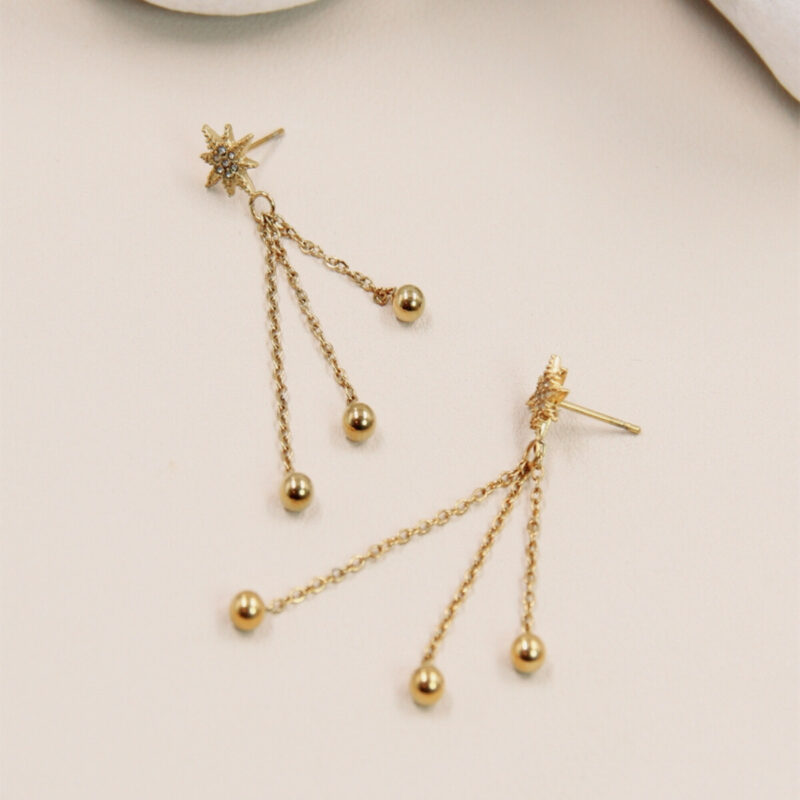 Boucle d’oreille pendante fleur étoile en acier inoxydable : Charme et modernité