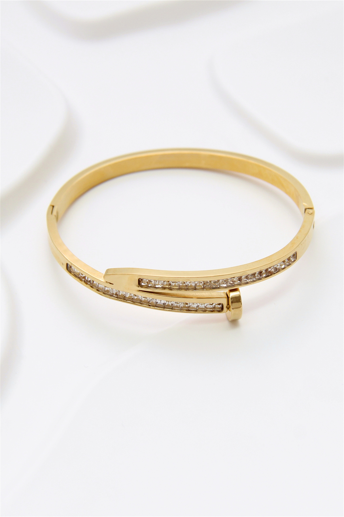 Bracelet Jonc clou Strass Acier Inoxydable – Style Glamour et Moderne