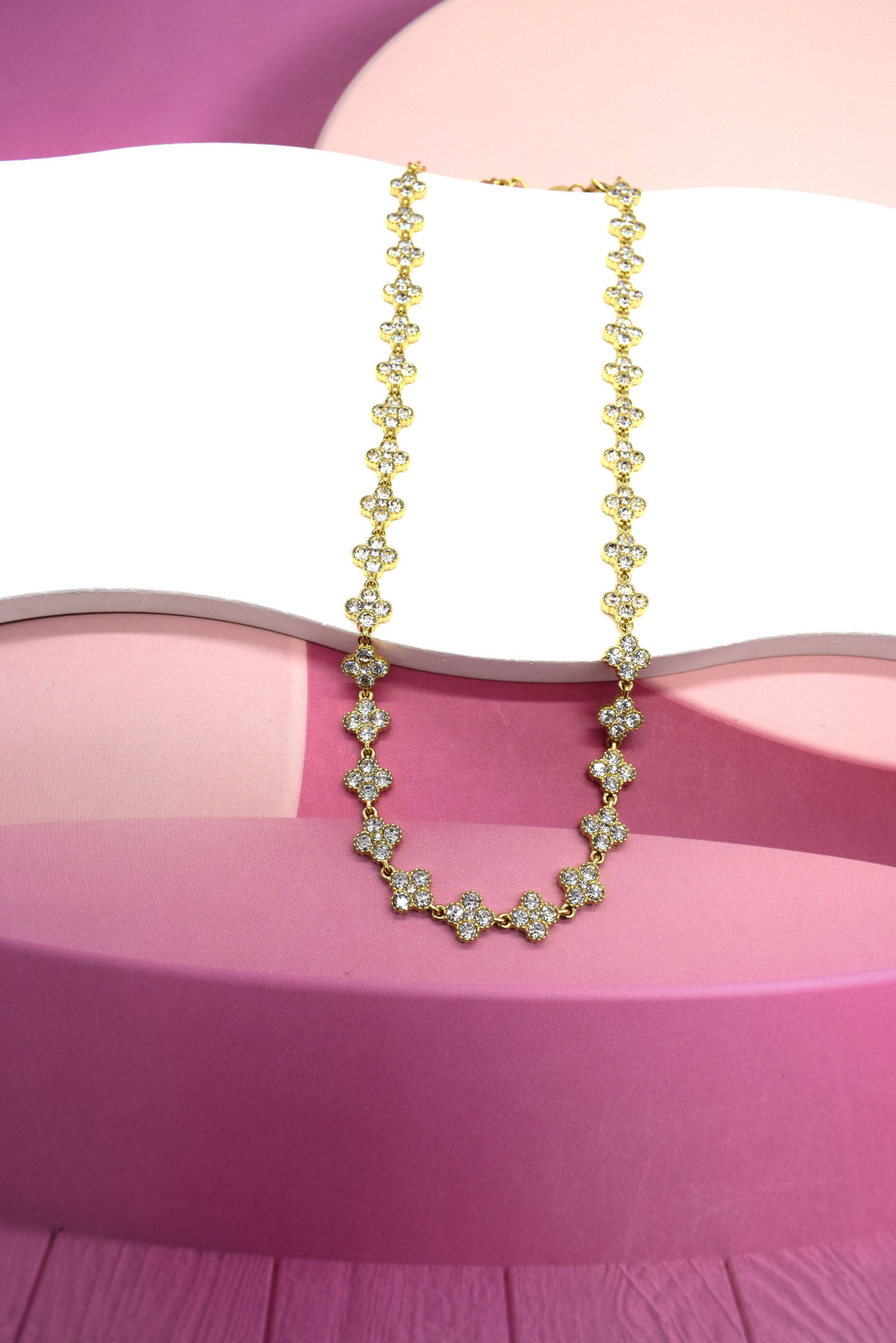 Collier femme en acier inoxydable et strass, idéal pour le printemps. Élégance intemporelle
